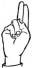 На ћирилици написано ИВА ОГЊЕВИЋ састоји се из 10 слова [?]. Исписано ћириличном једноручном азбуком за глувонеме: